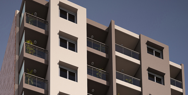 Edificio de diez plantas con unidades de un dormitorio.