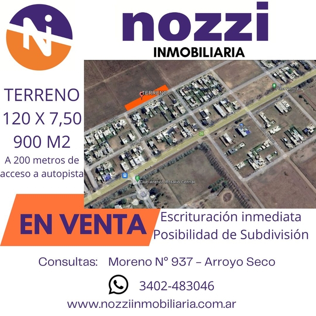 Descripción: Terreno de 900 m2 de superficie sobre calle Hipólito Irigoyen. Excelente ubicación. Posibilidad de subdivisión.