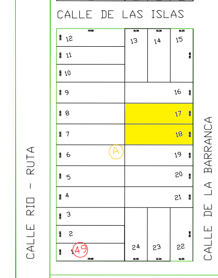 Lote 17: 15,00 metros de frente por 49,08 metros de fondo - 736,20 m2
