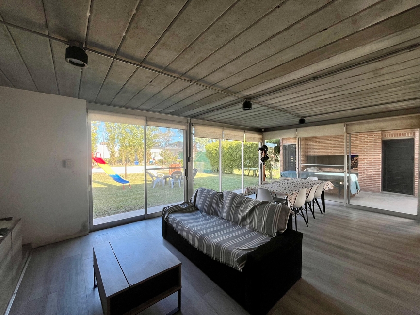 1 Dormitorio La propiedad cuenta con un dormitorio, cocina-comedor, un baño, galería pasante, cochera, amplio garaje con entrada individual (5x7), ventanas y ventanal con vidrios DVH, losa con planos aprobados para edificar planta alta,amplio parque verde (10x20...