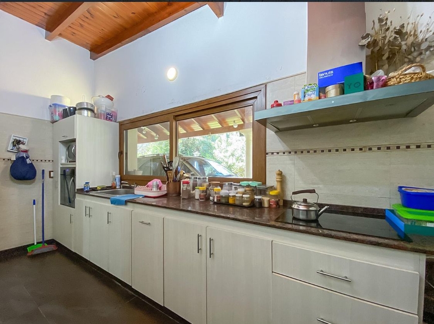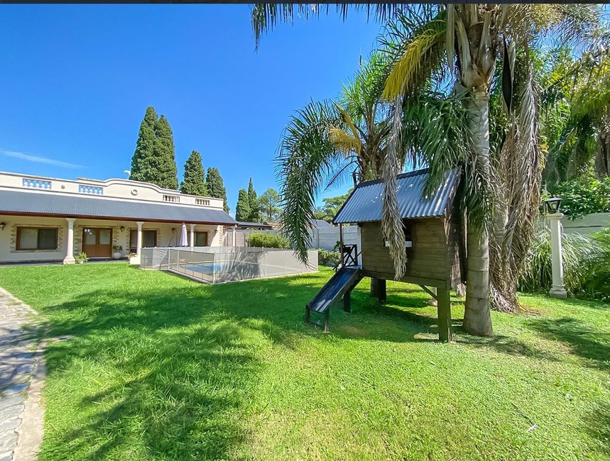 Descripción: Casa ubicada en el B° Acevedo, sobre calle Los Laureles, entre Los Algarrobos y Juncales, a 34,00 metros de la primera. Ubicada frente a la plaza principal del barrio, tiene un terreno de 26,00 metros de frente al Nord Este por 42,54 metros de fondo, encerrando una superficie total de 1.106,04 m2. En él se implanta una excelente propiedad de 340,00 m2, que se distibuyen en un estar - comedor, un living, cocina y cuatro dormitorios, de los cuales dos son en suitte y uno de ellos con vestidor, y un amplio baño. La parte exterior cuenta con una galería que recorre el inmueble en tres de sus lados, además de un depósito de guardado, lavadero y parrillero, un enorme jardín y una piscina de 33,57 m2.