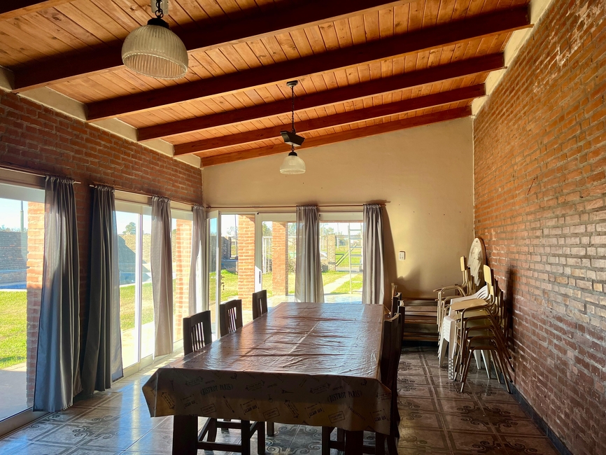 Descripción: Propiedad ubicada en B° "Las Cortaderas", en la esquina formada por las calles Ceibo y Los Albatros. Su terreno mide 15,20 metros de frente por 29,40 metros de fondo, encerrando una superficie total de 446,00 m2, que se distribuyen en galeria con parrillero y baño de servicio, cocina, comedor - estar, baño y dos habitaciones, con un amplio parque con piscina de 32,00 m2. Excelente orientación para disfrutar del sol, en la zona ribereña de la ciudad de Arroyo Seco.