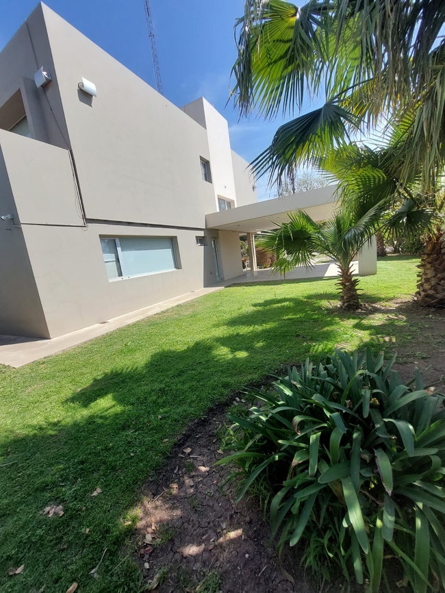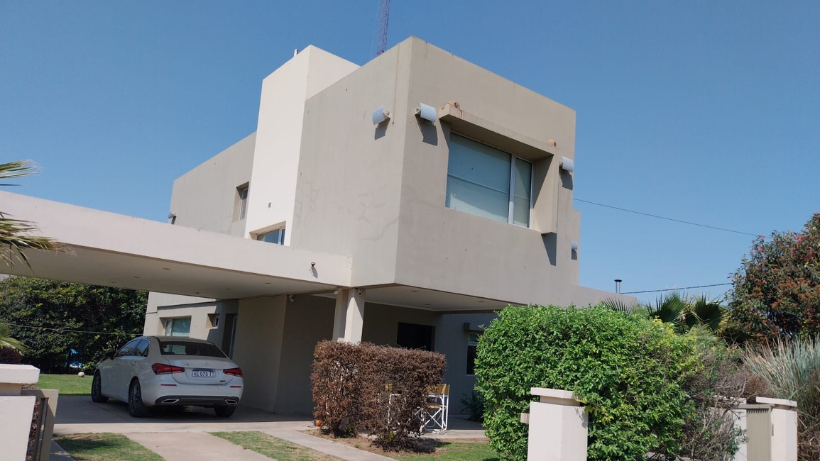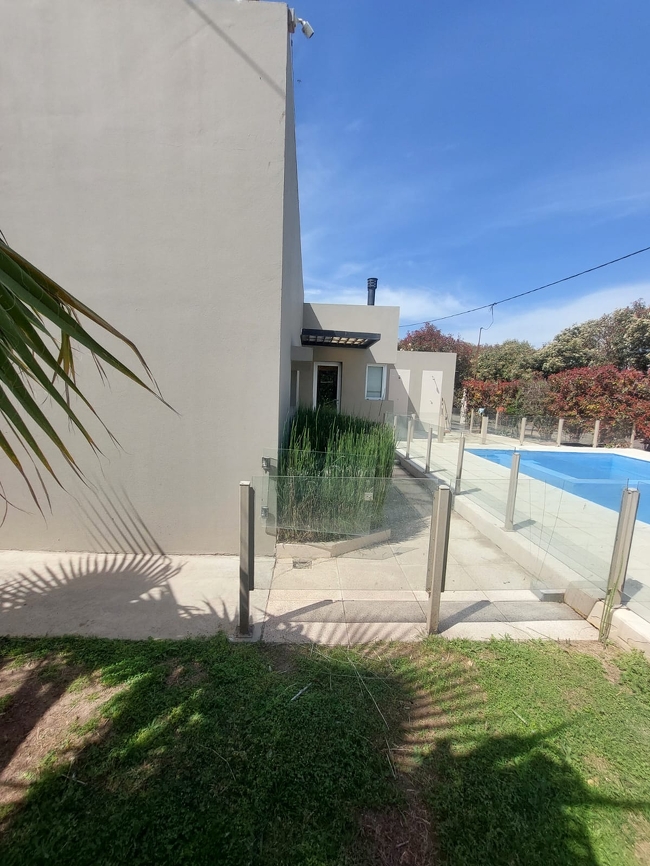 Descripción: Propiedad ubicada en barrio cerrado "La Chacra", tiene un terreno con una superficie total de 1030,00 metros cuadrados con frente al Nord Este. El inmueble se divide en dos plantas, por un lado la planta baja cuenta con 166,60 m2 distribuidos en una cochera para dos vehículos de forma horizontal, amplio espacio que se compone de cocina, estar - comedor, baño de servicio, sala de audio y video tipo "cine" que puede adaptarse a un cuarto dormitorio, living exterior, quincho completo, y pileta con solarium de unos 42,00 m2 con bomba sumergible. La planta alta cuenta con 104,00 m2 donde se encuentra un baño, tres dormitorios, uno de ellos en suite y con vestidor. Todos con gran luminocidad y ventilacion. Una hermosa propiedad para un gran confort y tranquilidad conectando con la naturaleza.