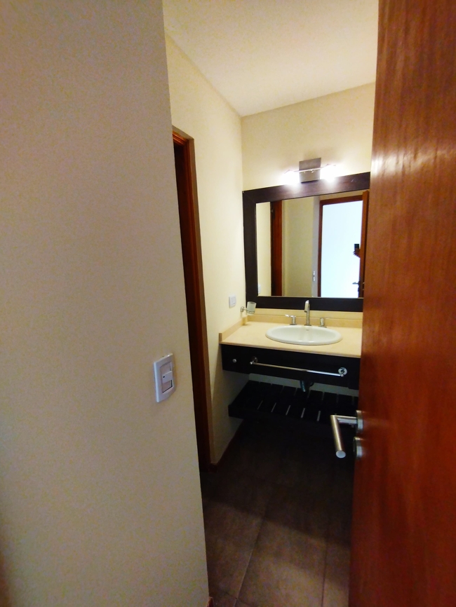 Descripción: Departamento de un dormitorio al frente, con placard empotrado de dos hojas, cortinas blackout y piso flotante, con cocina instalada, barra desayunadora, alacena y bajo mesada, antebaño, baño instalado completo con bañera, comedor y amplio living con aire acondicionado, con ventilación cruzada y calefacción central en todos los ambientes. El edificio "Arroyo Tower", ubicado en pleno centro de la ciudad de Arroyo Seco, frente a la plaza, a metros de la Municipalidad, cercano a la iglesia, bancos, supermercados, colegios y comercios. Su direccción es 9 de Julio 156, entre las calles Belgrano y Moreno. Es una moderna construcción que cuenta con cocheras en planta baja y subsuelo, dos ascensores, terrazas, lavadero con un baño de servicio y tres lavarropas. El edificio tiene once pisos.