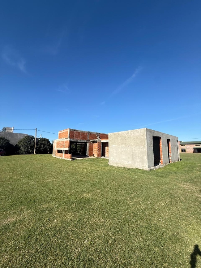 Descripción: Casa en barrio privado "La Chacra", ubicado a metros del acceso a la ciudad. El inmueble se encuentra en el lote 17, que mide 14,00 metros de frente al Nord Este, por 32,00 metros de fondo, encerrando una superficie total de 451,00 m2. En él, se implanta una casa a terminar, con todas sus paredes levantadas y techada de unos 135,00 m2 construidos y distribuidos en tres dormitorios, de los cuales uno es en suite con vestidor, cochera doble, lavadero, cocina, comedor, amplio living, baño de servicio, y patio de invierno. El barrio cuenta con amenities de Club House, cancha de tenis, vestuarios, parrilleros y una gran piscina.