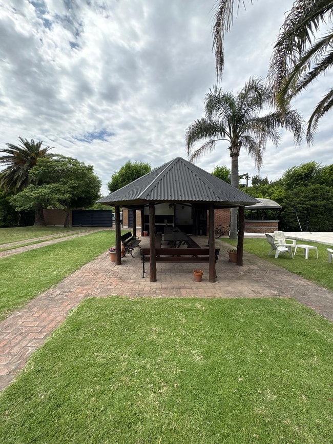 Descripción: Propiedad ubicada en el barrio Acevedo, ciudad de Arroyo Seco, compuesta por un conjunto de ocho lotes que totalizan una superficie aproximada de 3.860 m², sobre la cual se desarrolla una construcción de alrededor de 650 m². Dentro de los lotes H4 y H5 se emplaza la vivienda principal, que cuenta con baño de huéspedes, cocina-comedor, amplio living, dos habitaciones y una oficina adaptable, además de una piscina de aproximadamente 48 m², un quincho con parrillero, horno de barro, barra de tragos, vestuario con duchas, depósito para la bomba de la piscina y galpón de guardado. En el lote H6 se ubican una cochera para dos autos, un patio de invierno y una casa de huéspedes provista de dos dormitorios, baño y cocina-comedor. La propiedad dispone de portón eléctrico, cámaras de seguridad y abundante arboleda que realza el parque, contando con servicios de luz, agua de pozo y gas envasado (chancha), y presenta una antigüedad aproximada de 25 años.